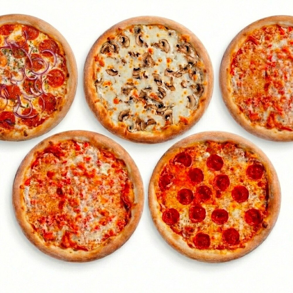 Комбо Вечеринка для 8–11 человек объединяет пять ярких пицц — острую Дьябло, классическую Маргариту, популярную Пепперони, ароматную Грибную и сочную Гавайскую. Отличный выбор для большой компании, где каждый найдёт вкус по настроению.