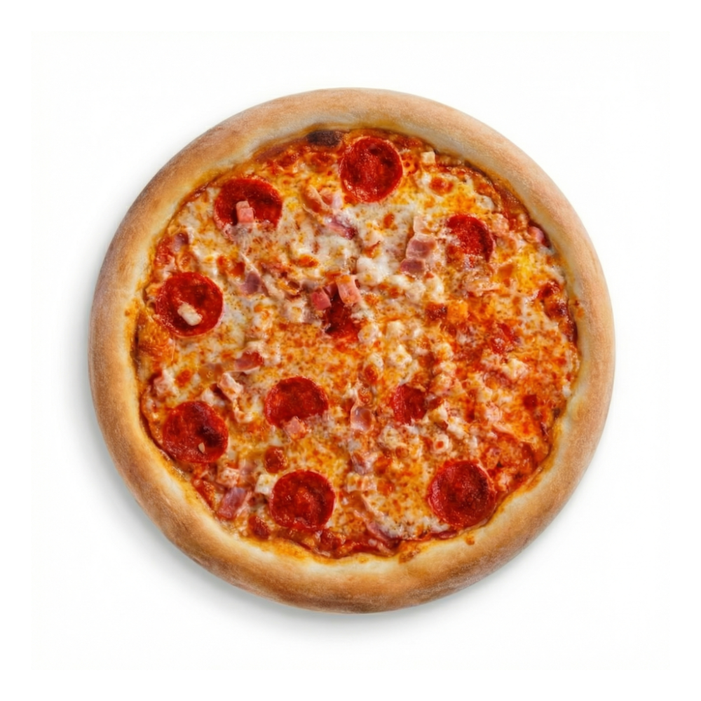 Мясной микс из хрустящего бекона, нежной курочки, ветчины и пикантных колбасок пепперони. А завершает невероятный вкус сыр моцарелла с оригинальным соусом.(30см)